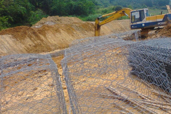 防汛鉛絲籠就是用重型六角網(wǎng)組裝成箱籠狀,在工程現(xiàn)場向箱籠內(nèi)填充一定規(guī)格的,滿足一定要求的石料,以形成自透水的、柔性的、生態(tài)的防護結(jié)構(gòu)。