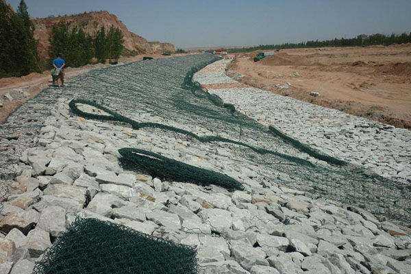 護坡鉛絲籠具有持久的抗腐性能,可以用于山地、河岸、濕地邊界和海岸線等地質構造中,可以持久護坡,為植物健康生長提供了穩定的生存環境。生態石籠護坡網中已裝入植物,最終材料遞降分解,成為根部系統內聚強度。裝置的柔韌性是保護河床和護坡的基本因素